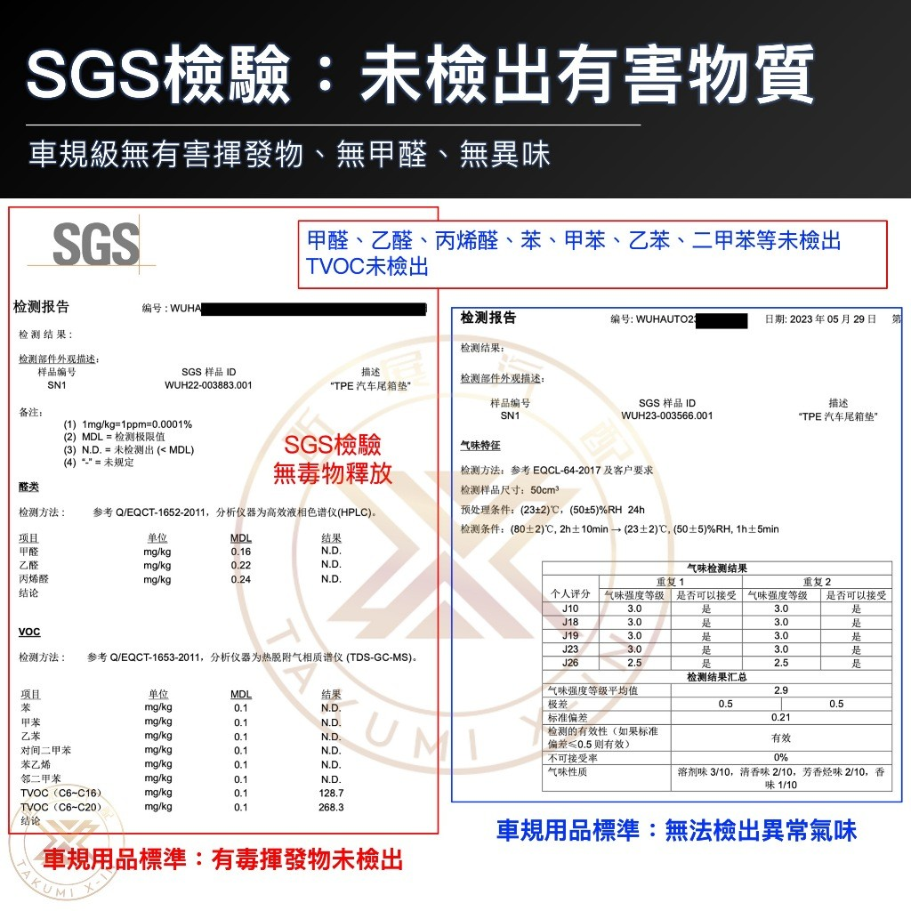 先講重點:原車3D掃描開模,邊角與凹位都服貼,放進去就定位;高邊立體擋水,外食湯汁、海邊玩水的鹹濕、下雨天的泥沙,全部被圈在托盤內,不會滲到底層。材質是車用級 TPE,通過 SGS 檢測,沒塑膠惡味;耐磨、耐油又防滑,清潔只需要濕布一擦,或整塊提起沖一沖,兩分鐘復原像新車。