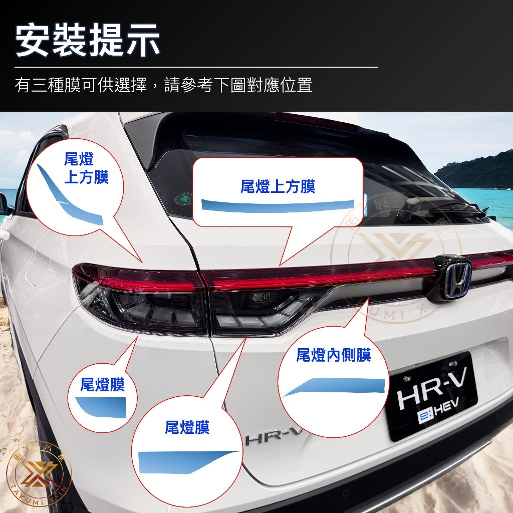 貼好之後,不只能讓HRV的屁股看起來更有層次,也順便幫尾燈加上一層保護。想讓愛車多一點個性、少一點負擔的改裝,從這片小小的TPU燻黑尾燈膜開始就很剛好。