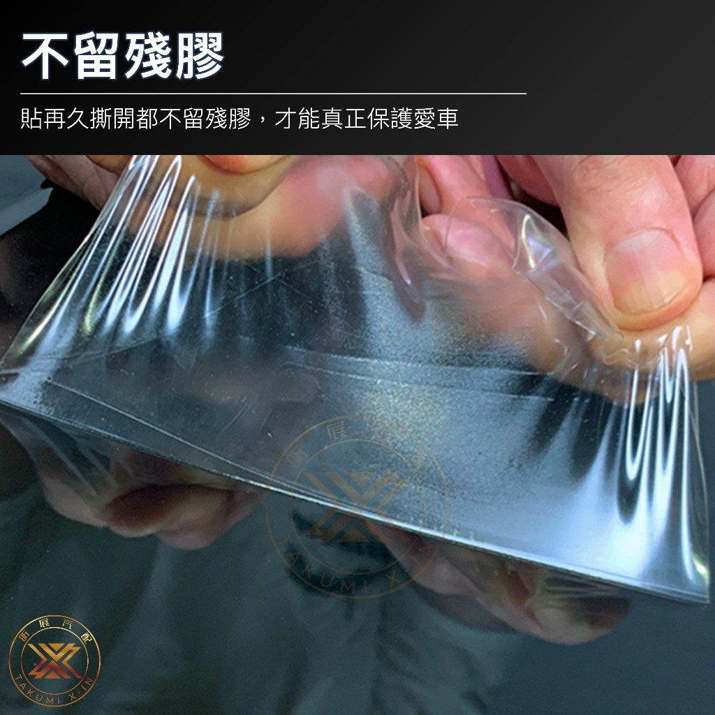 TPU本身有自修復塗層,日常小刷傷、小砂石刮過去,曬一曬或過一陣子就會慢慢淡掉,同時也幫你擋掉一部分紫外線,減少燈殼霧化、變黃的速度。正常使用約可撐3~5年,高壓水柱直接沖洗也不用怕掀角、捲邊,之後若想恢復原樣,撕除也不殘膠。