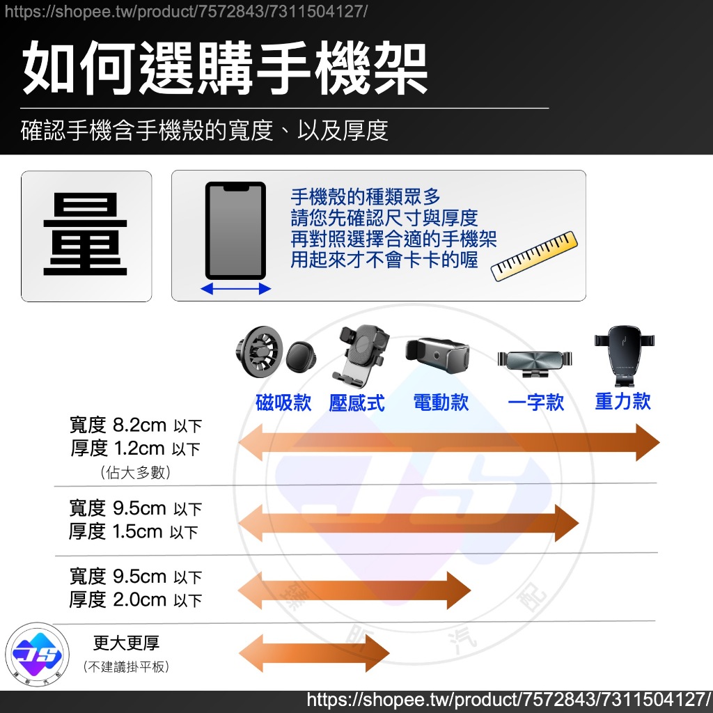 答:本商品底座通用多款壓感、重力、磁吸與電動夾臂等手機支架,搭配的球頭規格為17mm大小,賣場選項都已經為您搭配好,可直接選購。