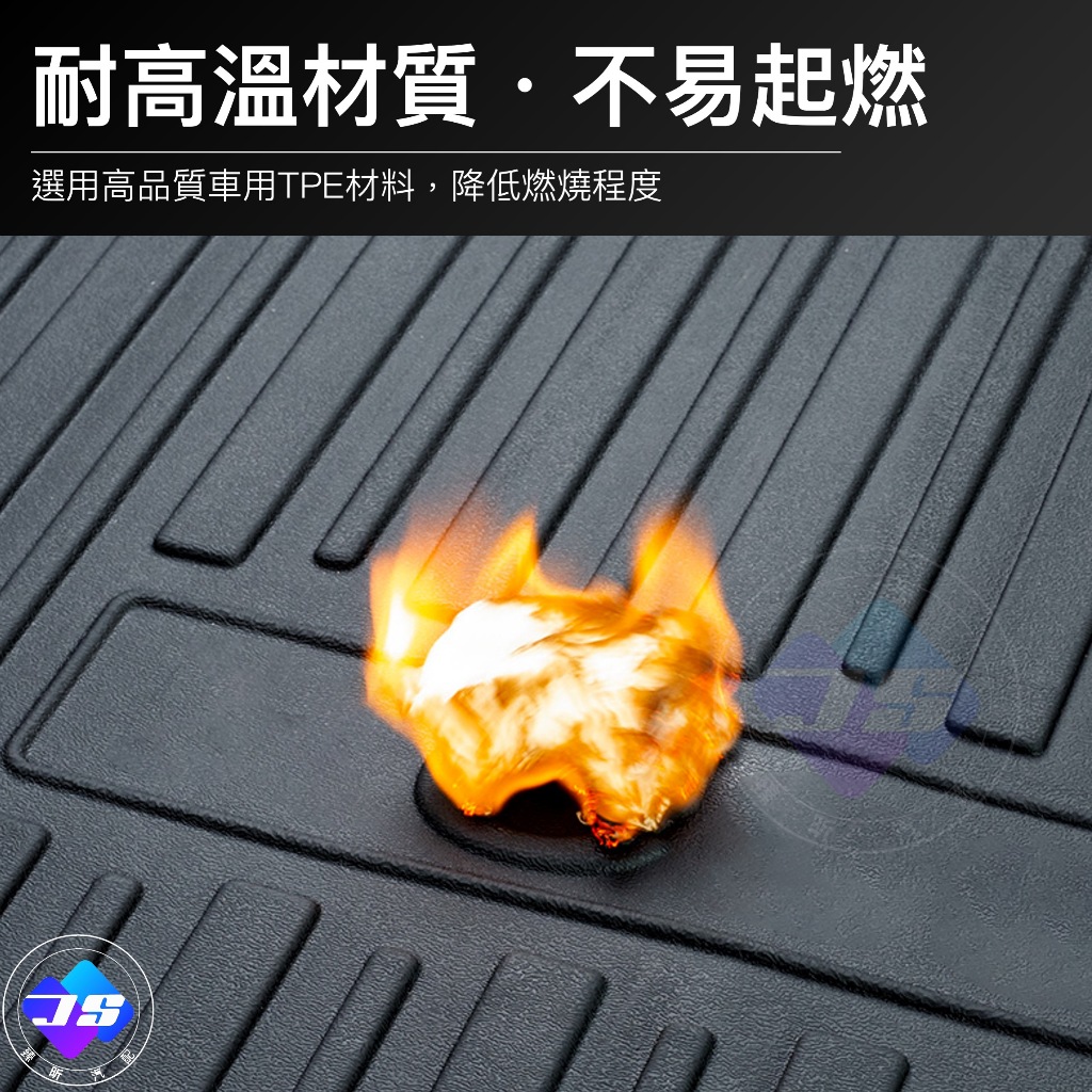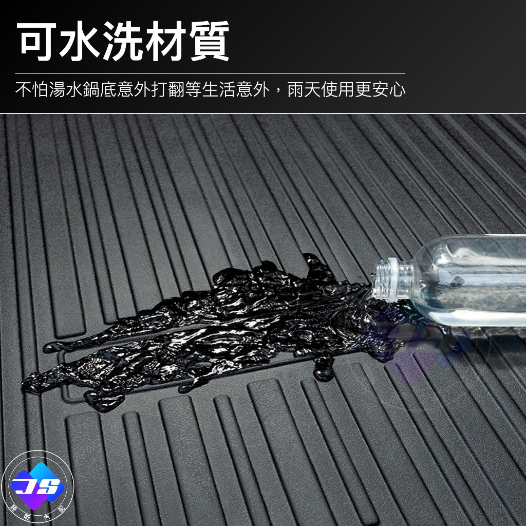 答:採TPE熱塑彈性橡膠一體成型,厚度有1.5mm左右,並採四邊加高防水設計,有效防止泥水滲漏,維持車艙整潔。