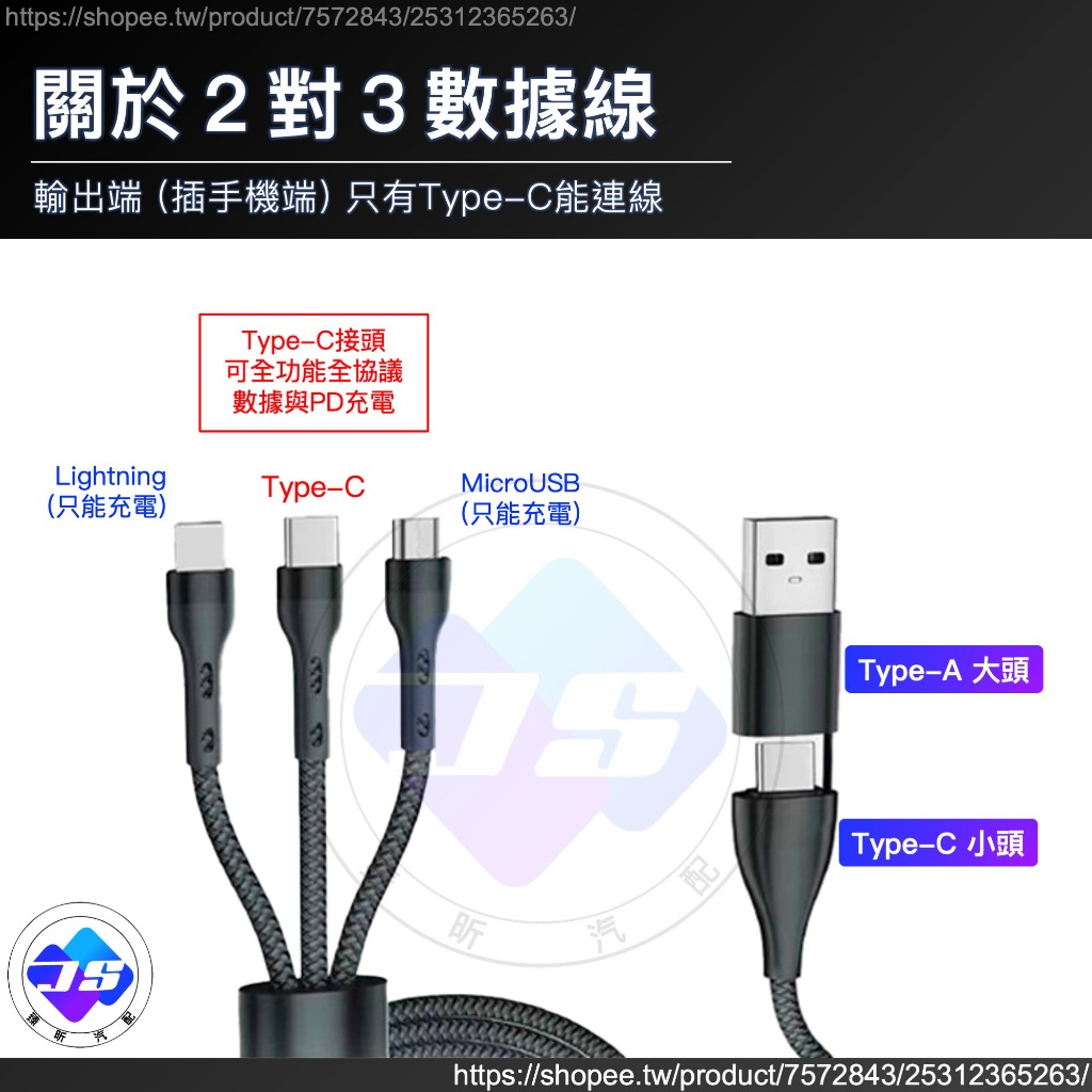 ✅ 2對3 Carplay數據連接線 (支持PD 240W快充)